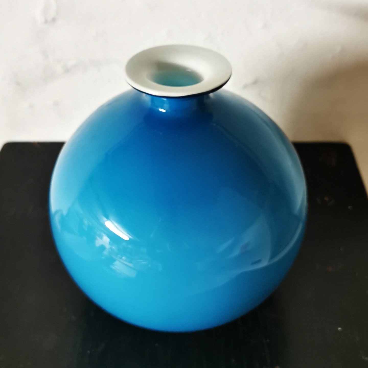 STOR MODEL: Rund blå Carnaby glasvase fra Holmegaard