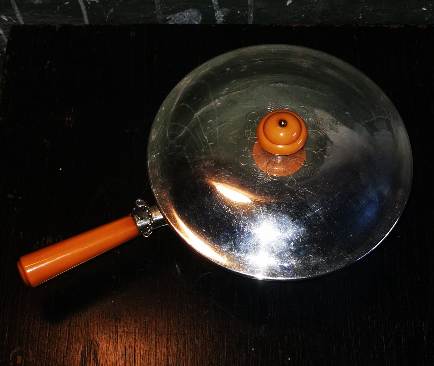 Kaserolle i sølv plet. bakelite knop og håndtag af Just Andersen for G.A.B
