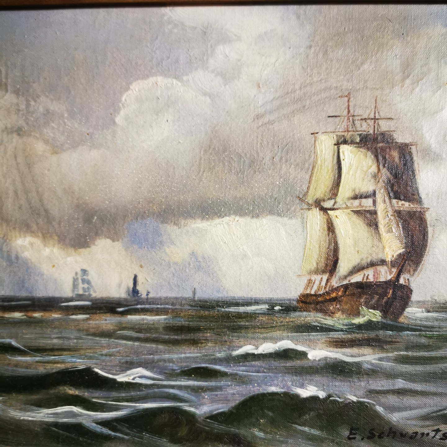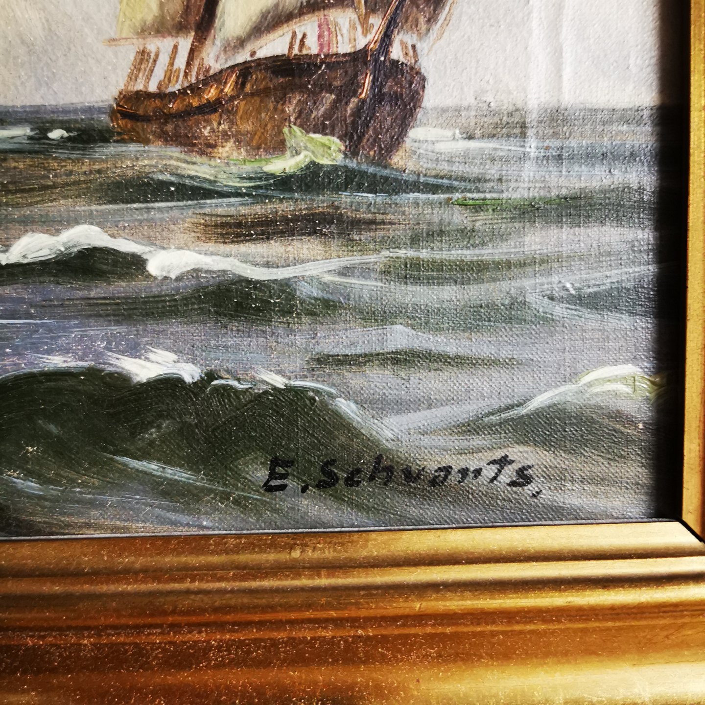 Marine maleri i guldramme