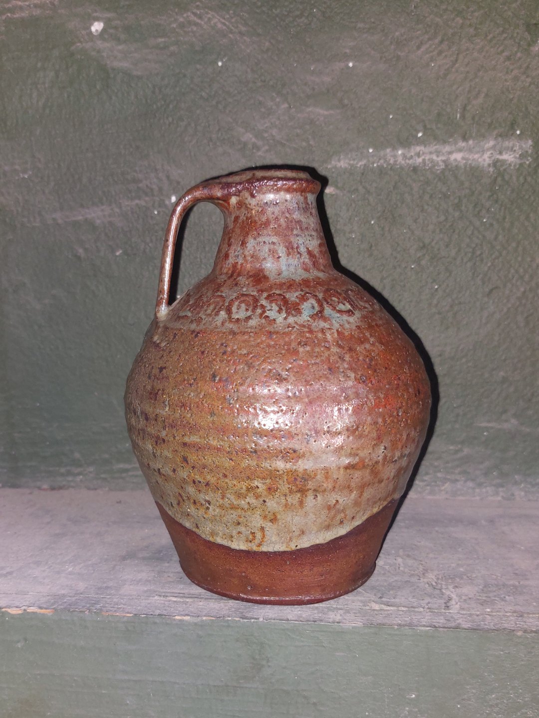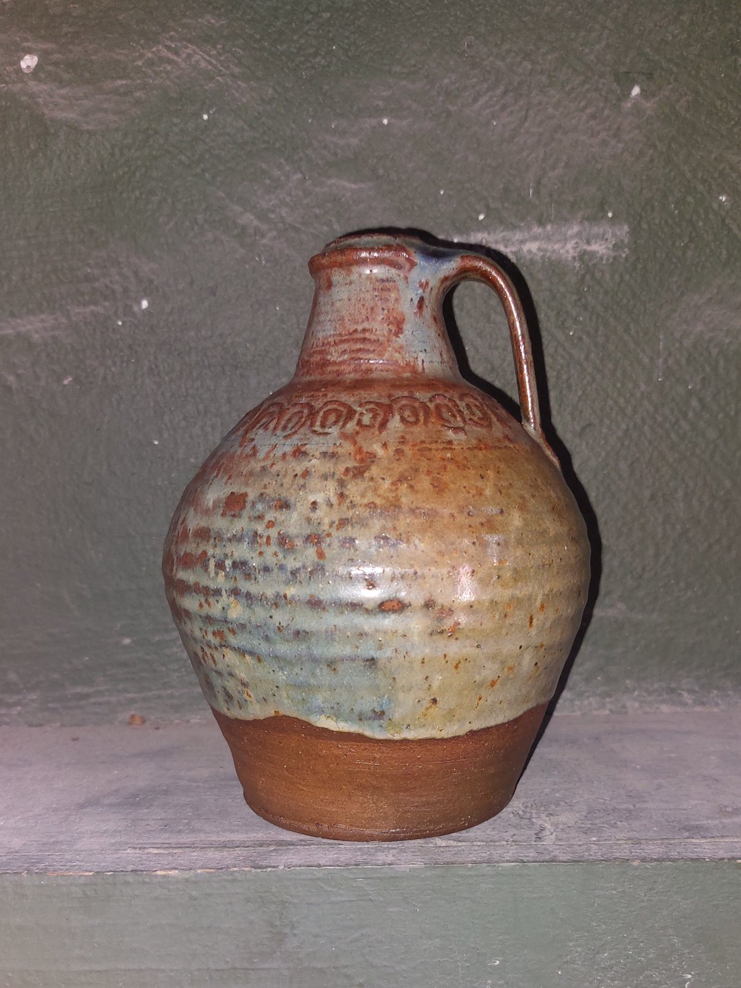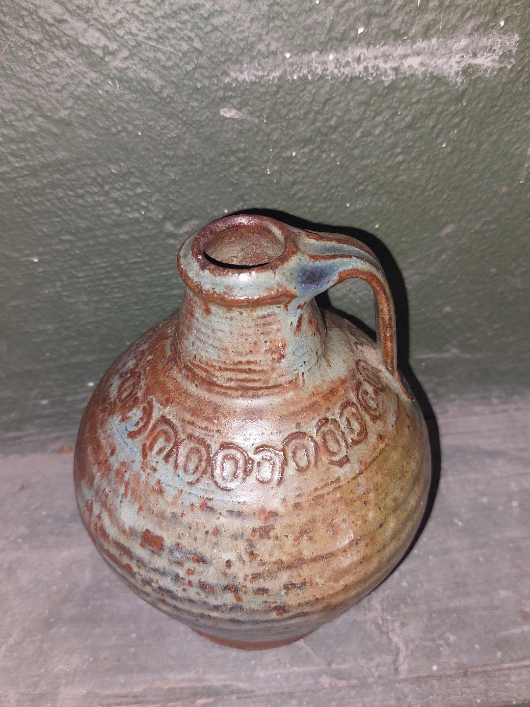 Gutte Eriksen: Jug in ceramic with stamp decoration. Partially glazed. Without signature. Appears in perfect condition. H. 15.5 cm.