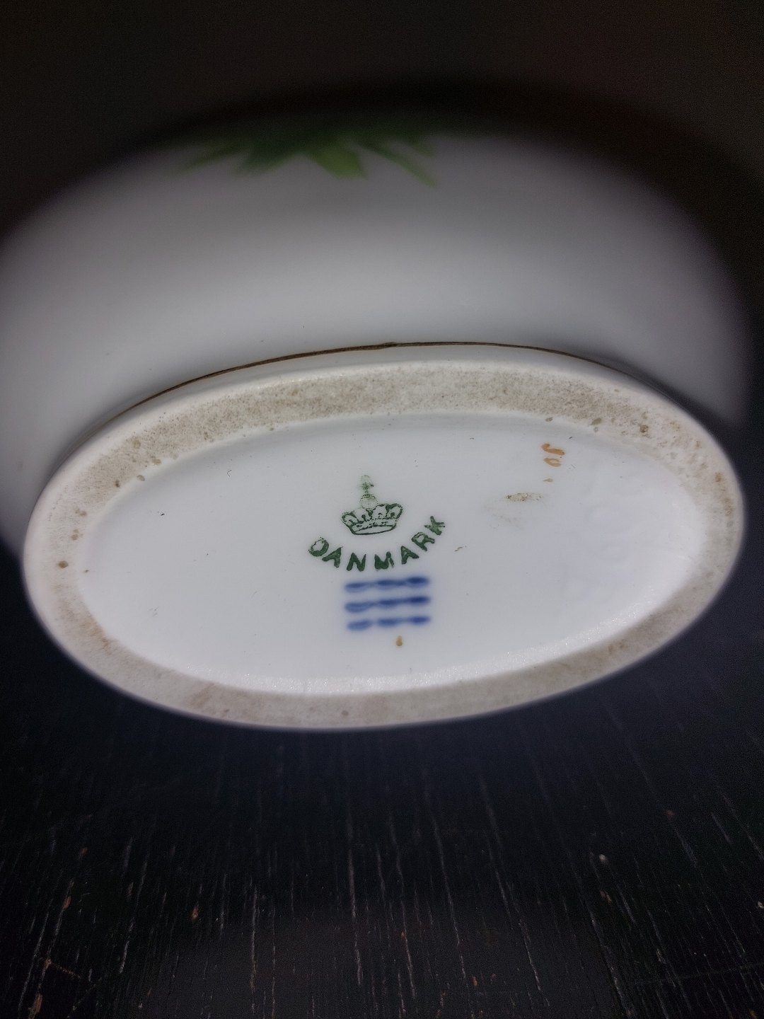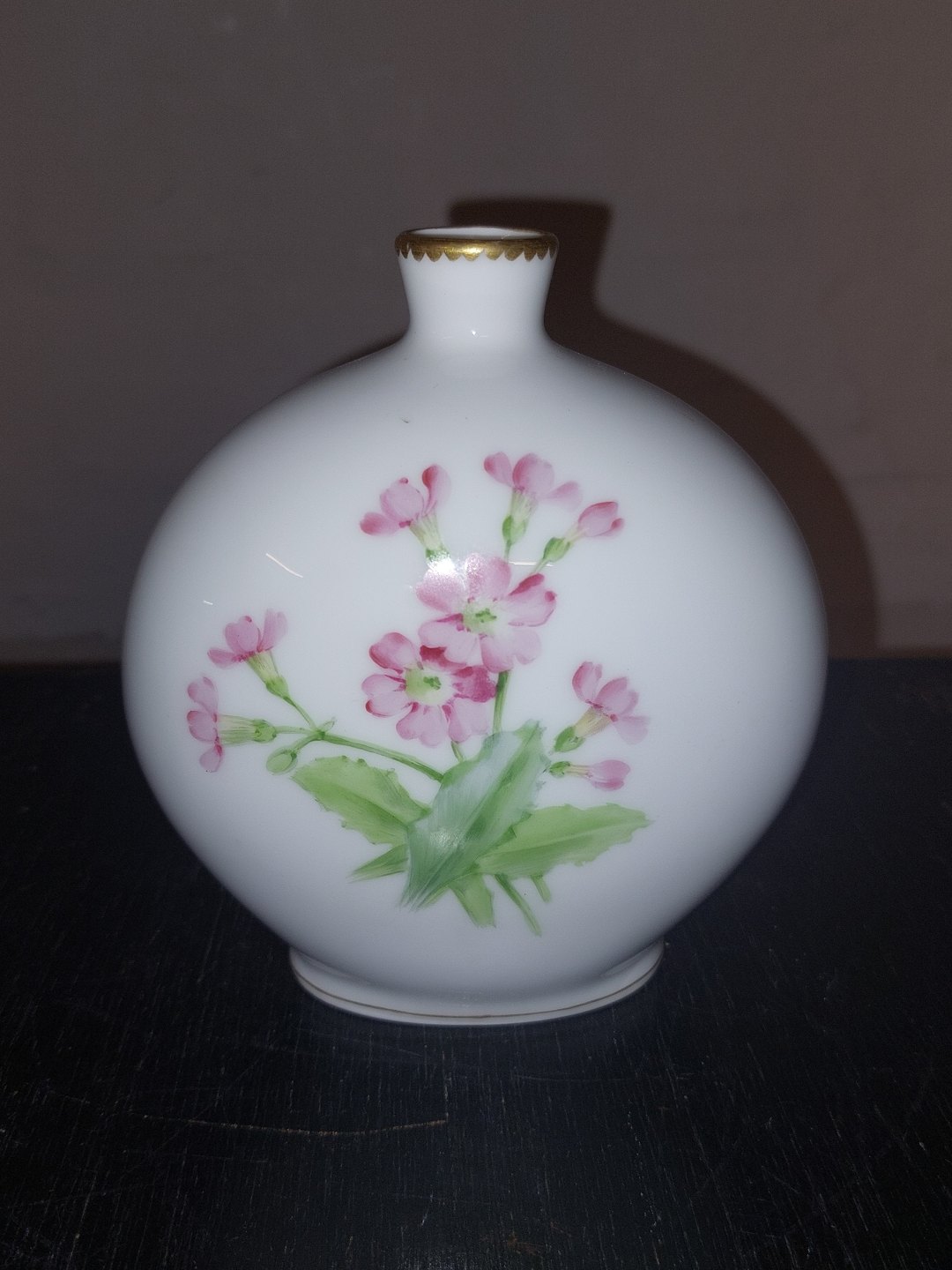 Art Nouveau perioden: Pille-formet vase I porcelæn fra Royal Copenhagen med bemalede blomster på begge sider i overglasur. Fremstillet I slutningen af 1800-tallet mellem 1894-1900. I perfekt stand. Ingen skader eller reparationer. 1. Sortering. H. 14,5 cm.