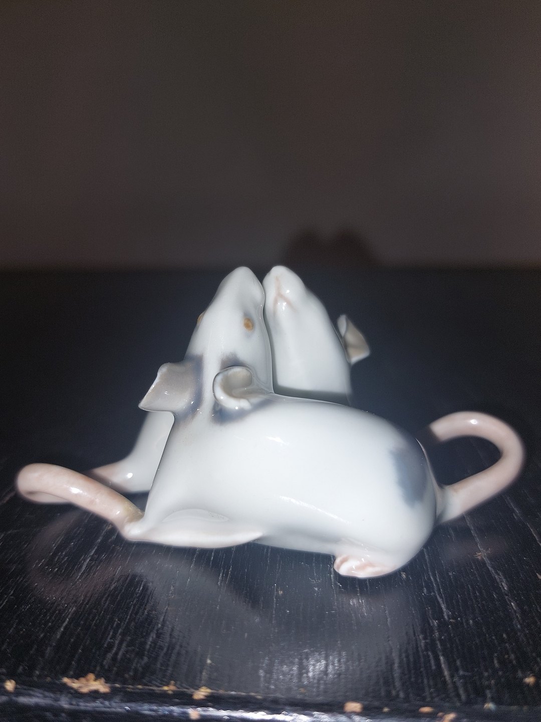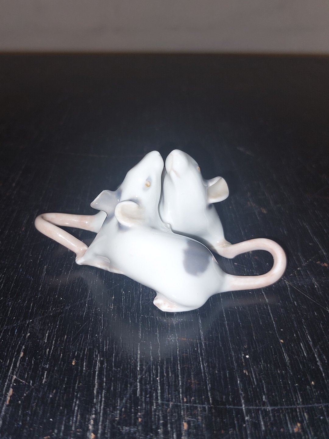 Royal Copenhagen figur med to mus i porcelæn. Fremstår i god stand. 1. sortering. Ingen skader eller reparationer. Fabriksmærket på bunden. Modelnummer 521. Mål: H. 4.5 cm