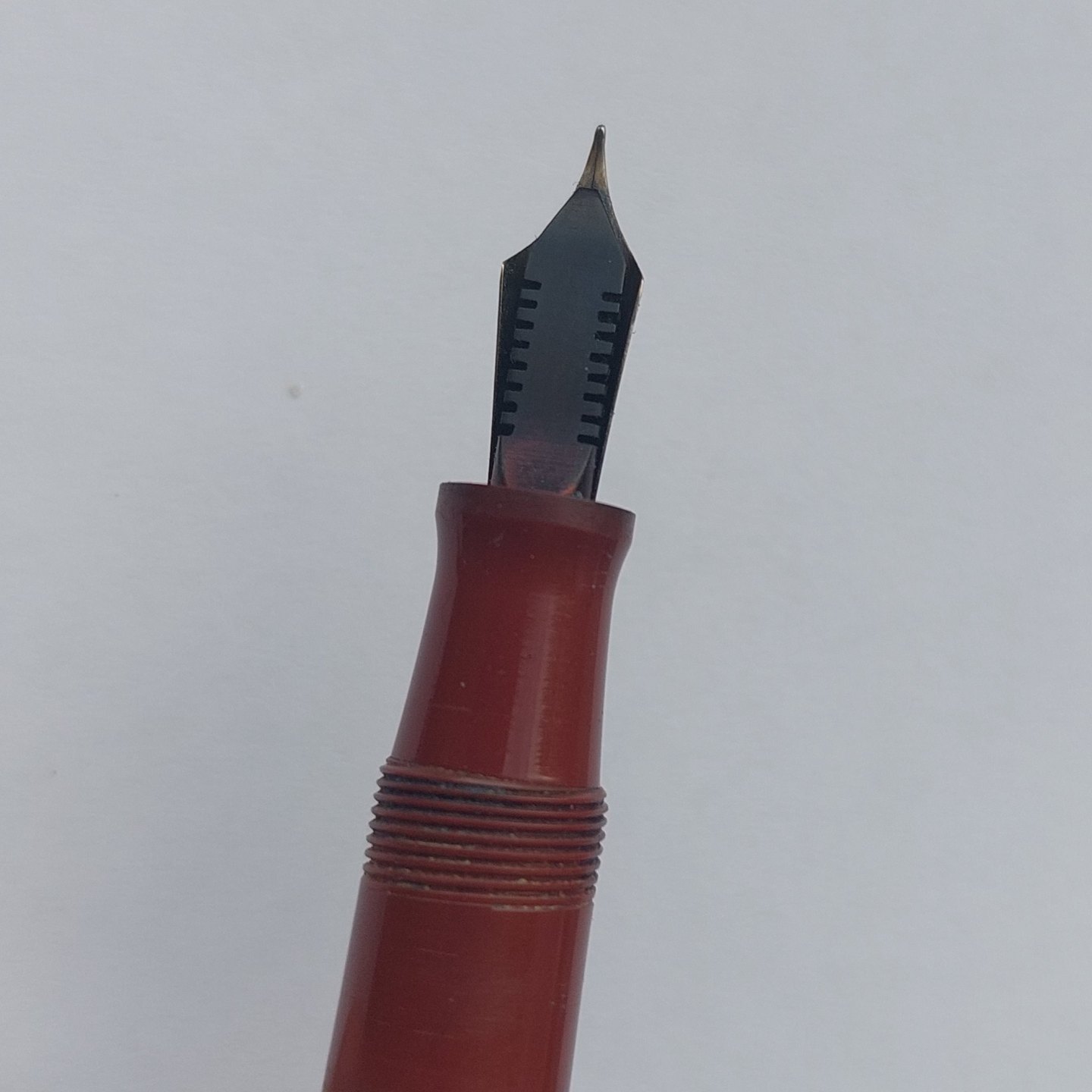 Påfyldning af blæk. Den gamle gummisæk, der sidder i denne fyldepen, fungerer ikke. Der skal indsættes ny gummisæk før end fyldepenne kan optage blæk påny og skrive igen. Der kan indsættes ny gummisæk ved betaling af d.kr. 250,00