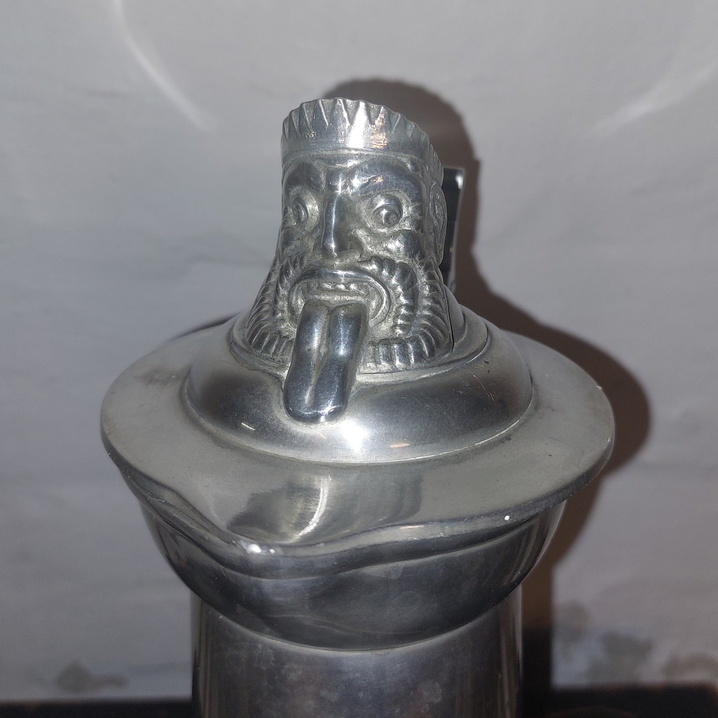 Høj kande i tin fremstillet i Schweitz. Designet af Hans Frei (1868-1947) som præmie til skydefestival. Tekst på bunden:.KANTONAL SCHÜTZENFEST BEIDER BASEL 1927. Har et par mindre buler. Ingen skader eller reparationer. H. 32,5 cm