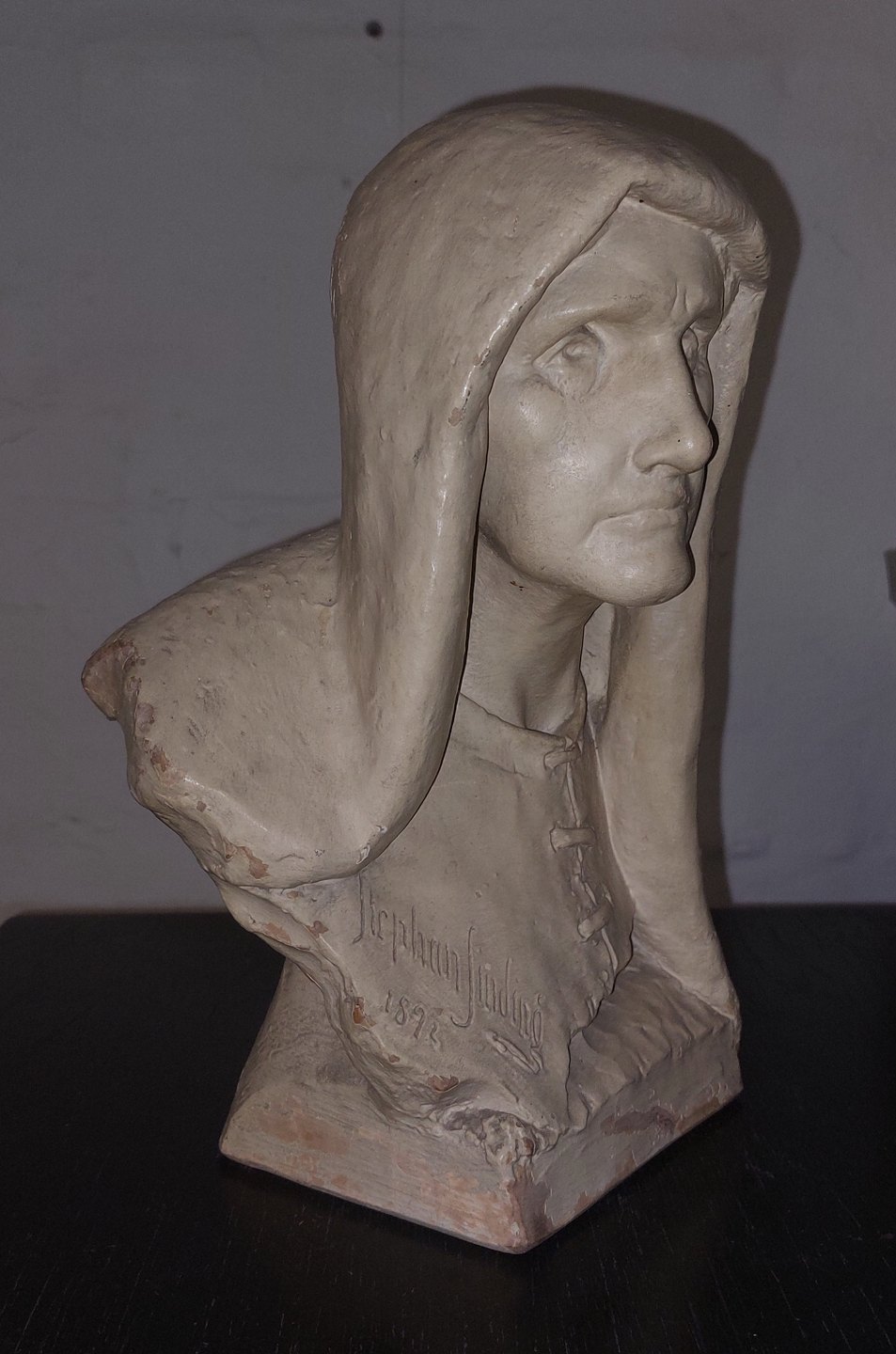 Bemalet Buste af mand udført af billedhuggeren Stephen Sinding i 1896 for L. P. Jørgensen. Formodes fremstillet omkring 1900. H. 26,5 cm