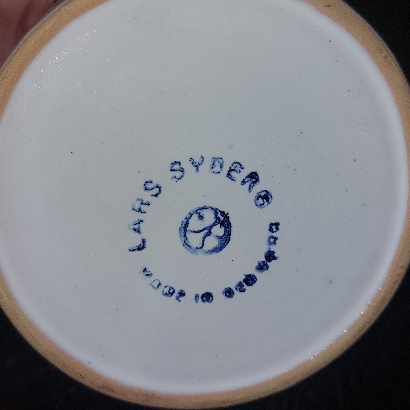 Rund marmeladekrukke i keramik med bemalet blomster på to sider med tilhørende låg. Fremstillet på Lars Syberg keramik værksted omkring 1960. I god stand uden skader eller reparationer. H. 9,5 cm