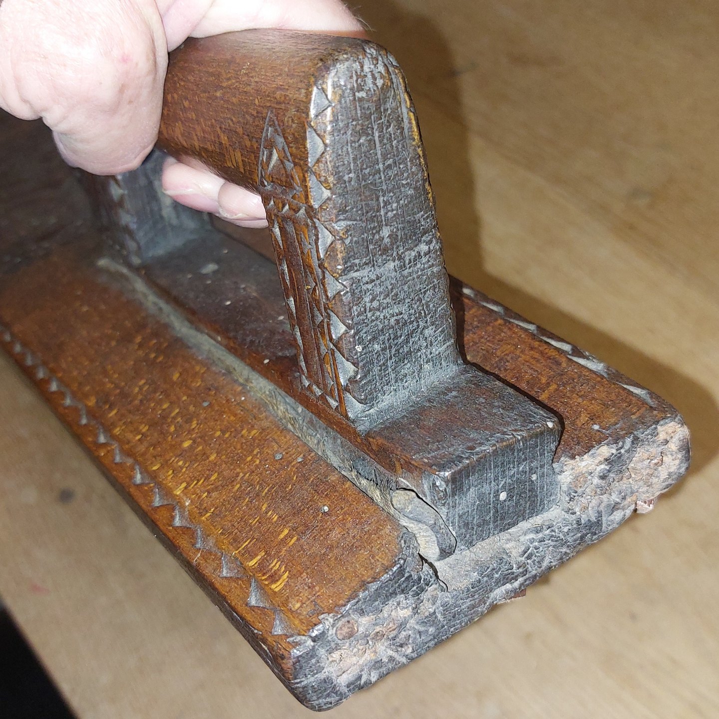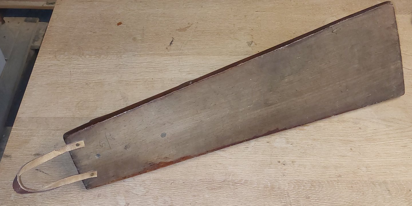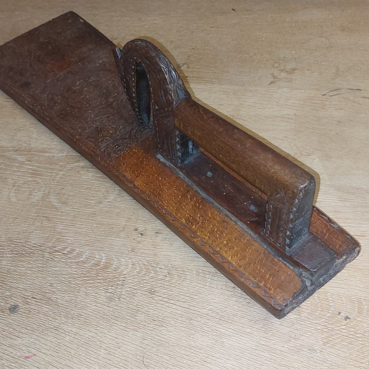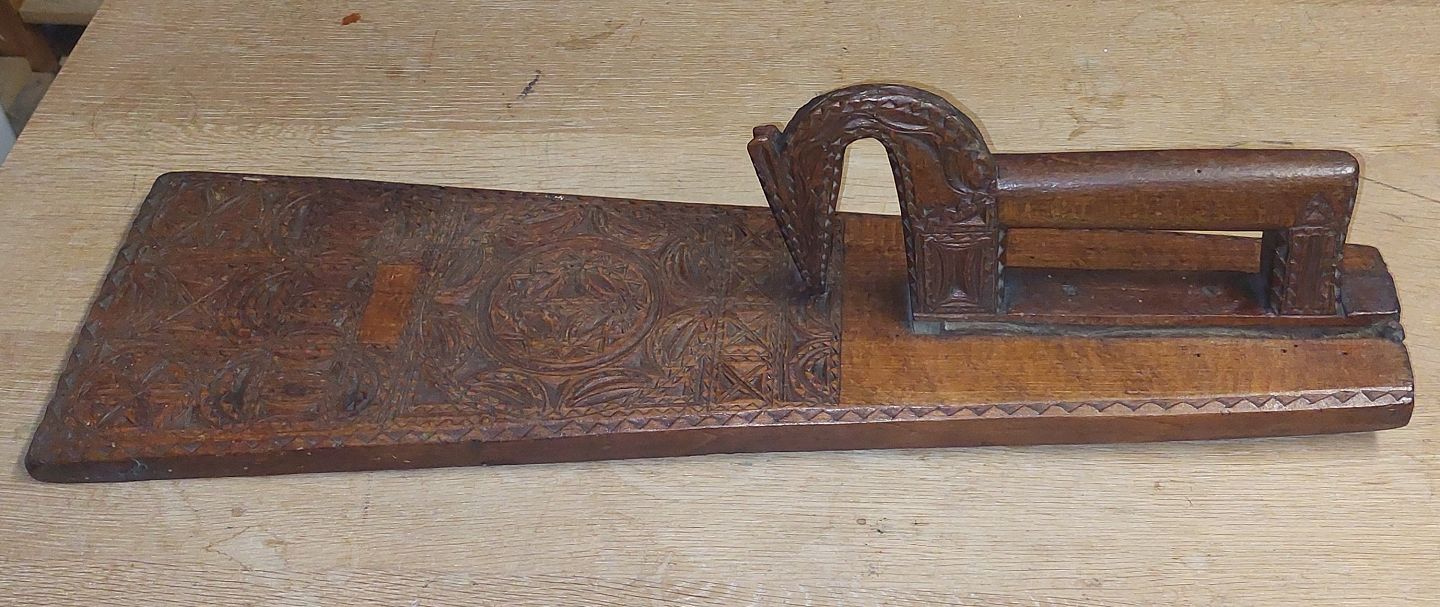Manglebrædt med hest. Skåret I træ. Fremstillet anden halvdel af 19. århundrede. L. 61 cm