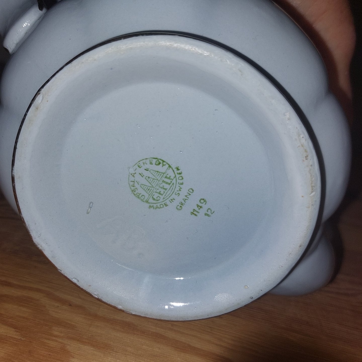 Art deco kaffekande fra "Grand" stellet produceret for Upsala-Ekeby/Gefle i Sverige. Designet af Arthur Percy i 1930´erne. I god stand uden skader eller reparationer. Fabriksmærket på bunden. H. 16 cm L. 23,5 cm