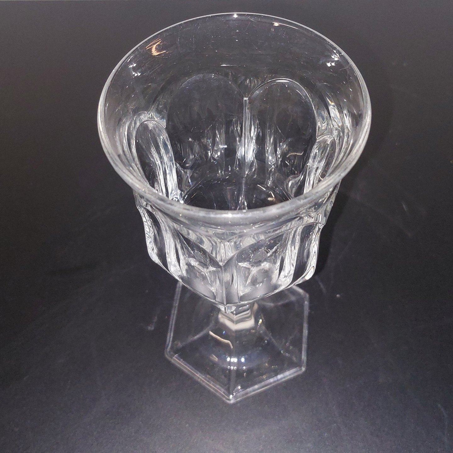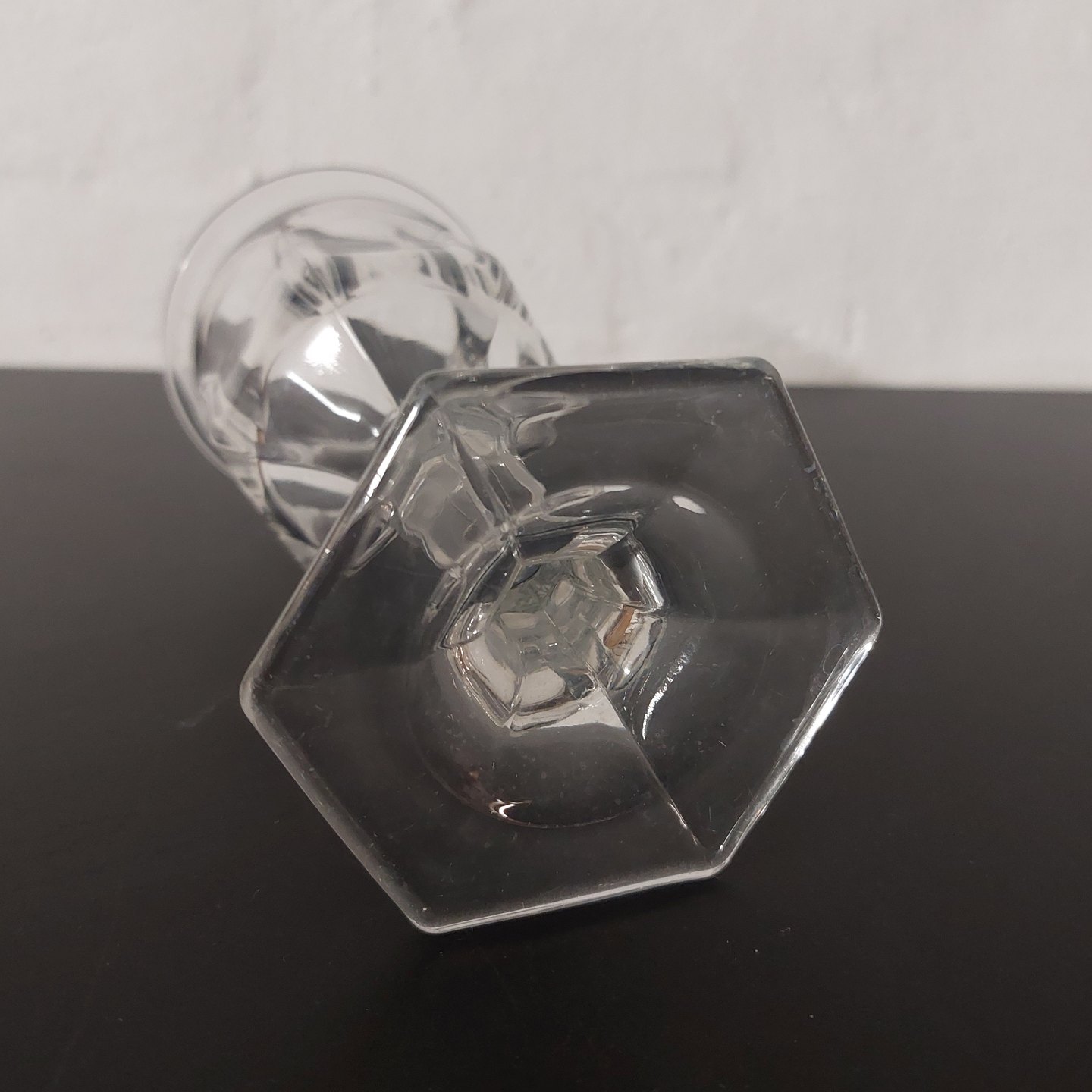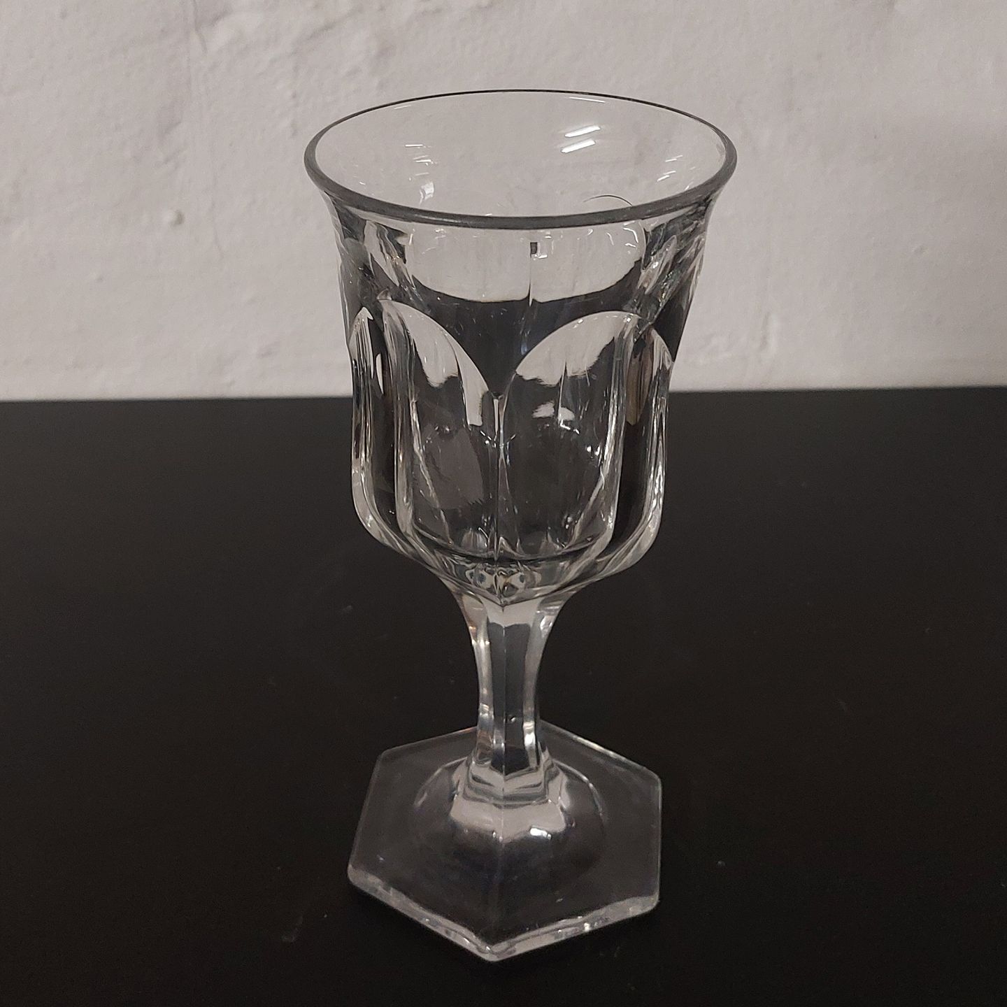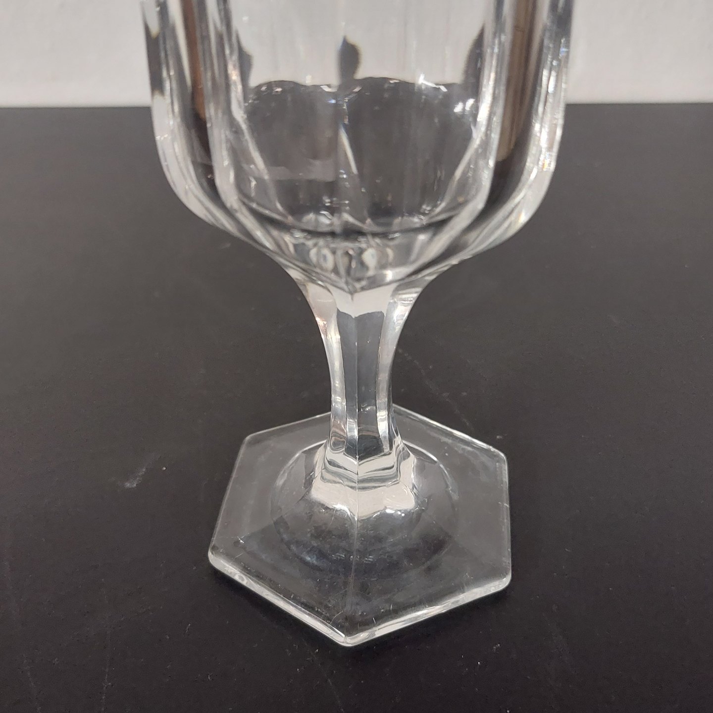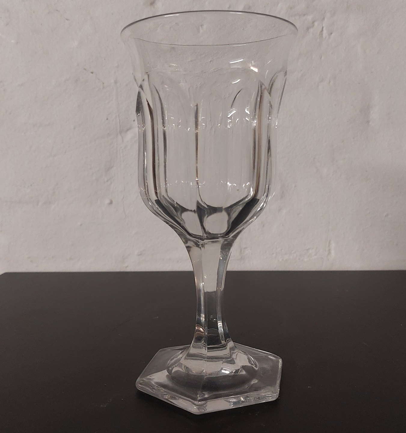 Vinglas på seks-kantet fod