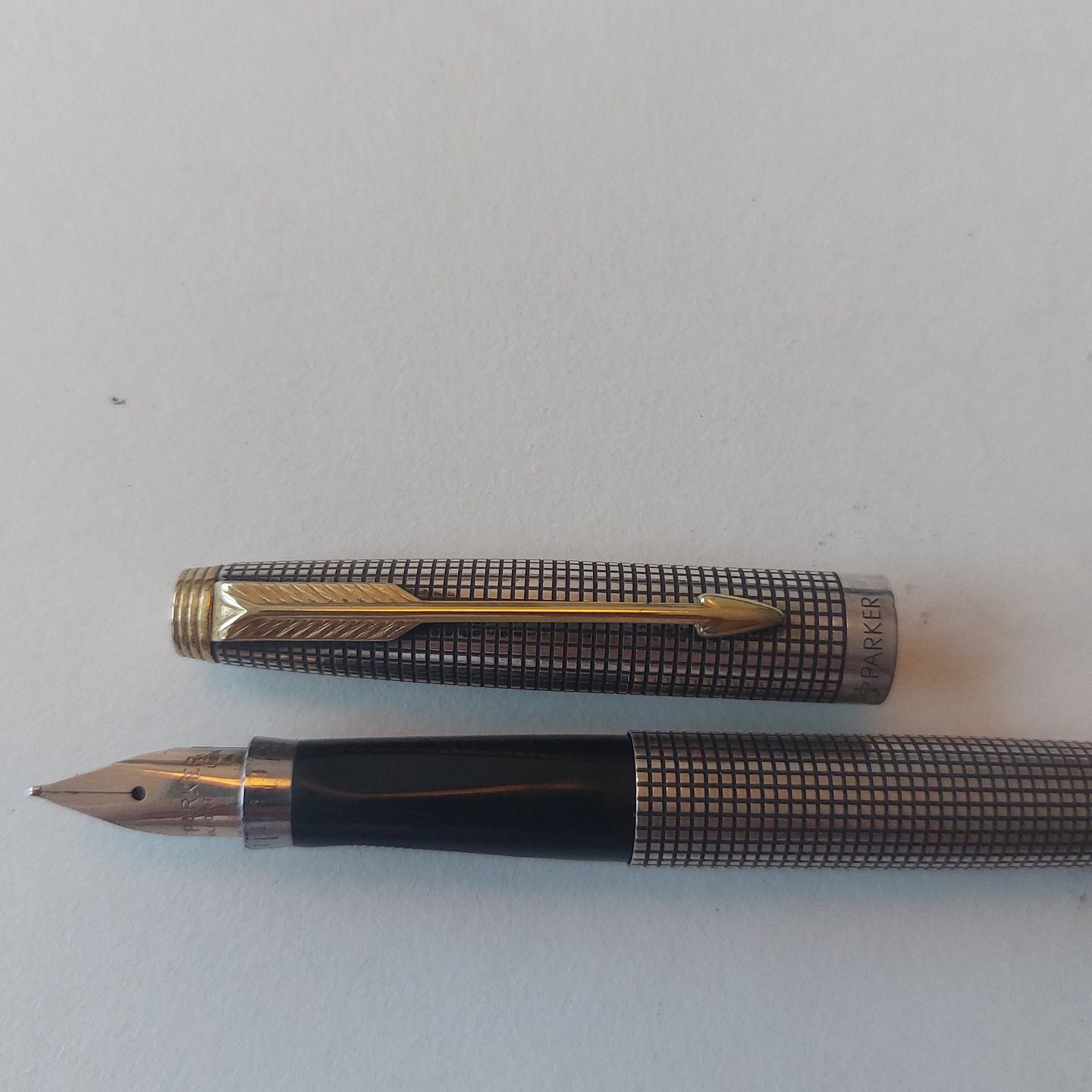 Parker nr. 75 cisele 925S sterling sølv fyldepen. I god stand uden skader eller reparationer. Ingen buler eller manglende dele. Skal dog have indsat en ny refil med blæk før end den igen kan skrive. På toppen af hætten ses Boing's logo. Alle dele originale Parker dele. 14 karat guldspids. Fremstillet I U.S.A L. 13 cm