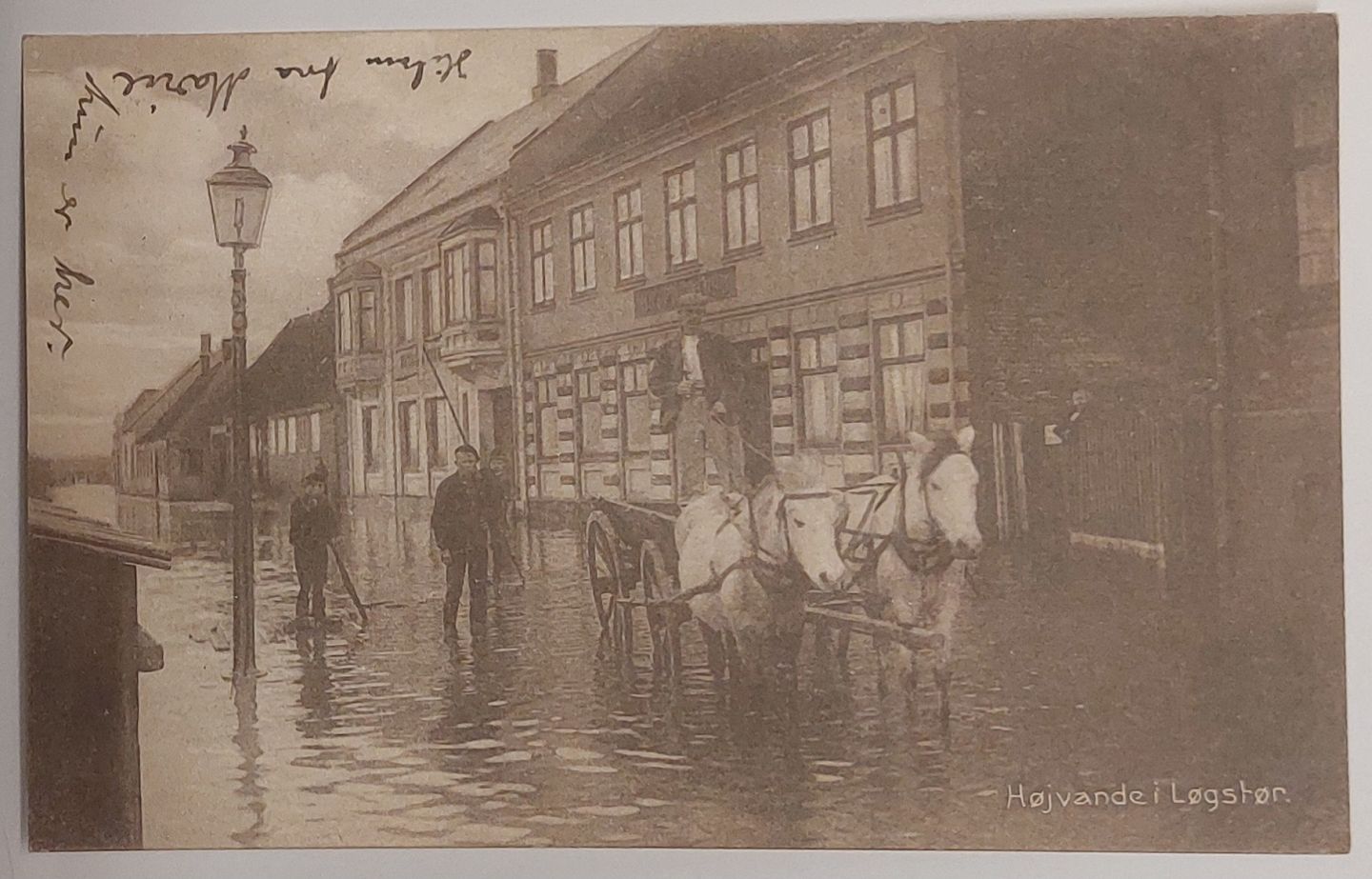 Postkort: Højvande i Løgstør i 1914