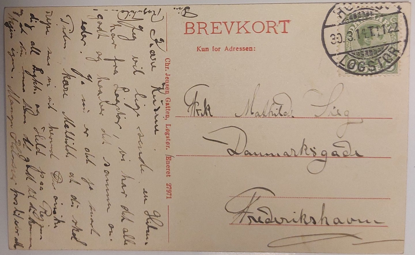 Postkort: Motiv med højvande i Løgstør. Annulleret LØGSTØR i 1914. I god stand.