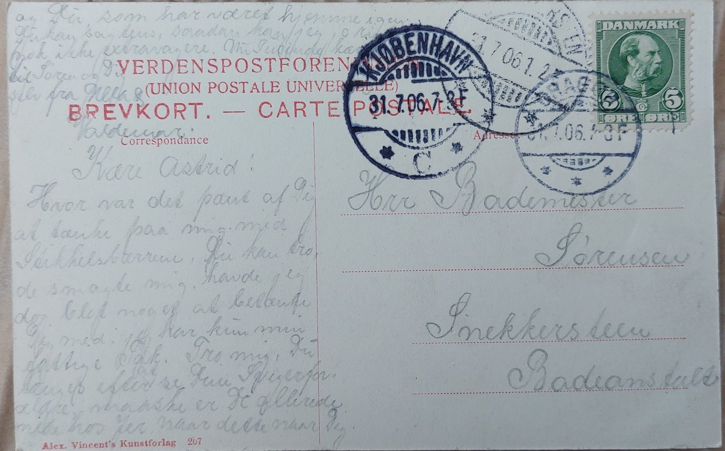 Postkort:.Personer på havnemolen I Dragør I 1906