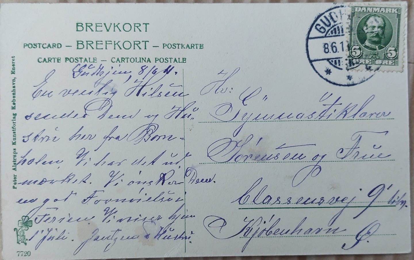 Postkort: Sildene pilles af garnene i Gudhjem, Bornholm. Annulleret GUDHJEM i 1911. I god stand