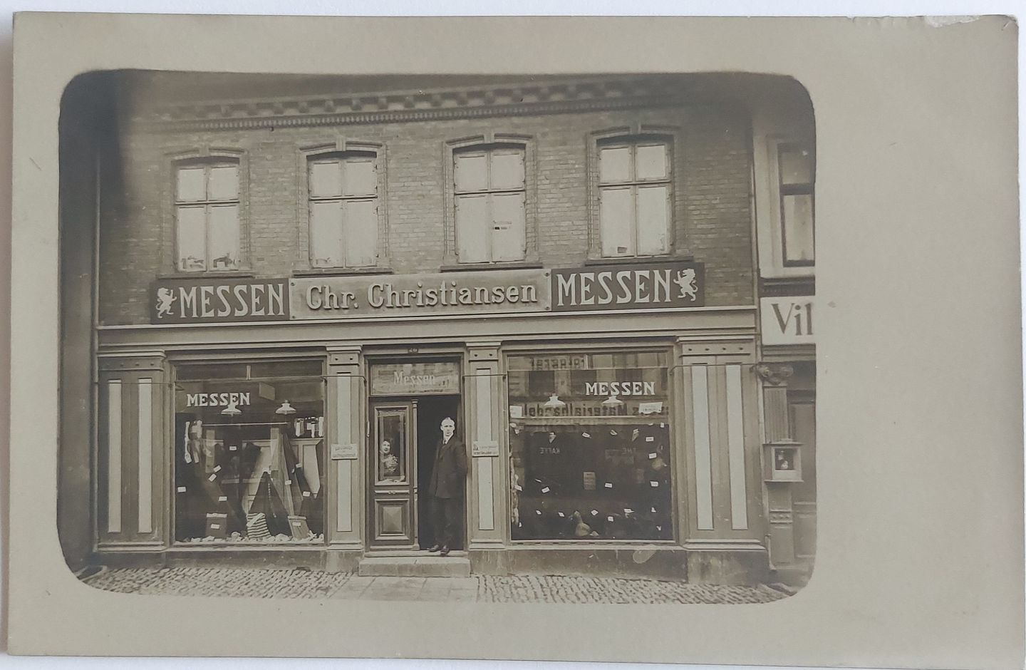 Postkort: Butiksfacade Beklædning. Annulleret ASSENS I 1909. I god stand.