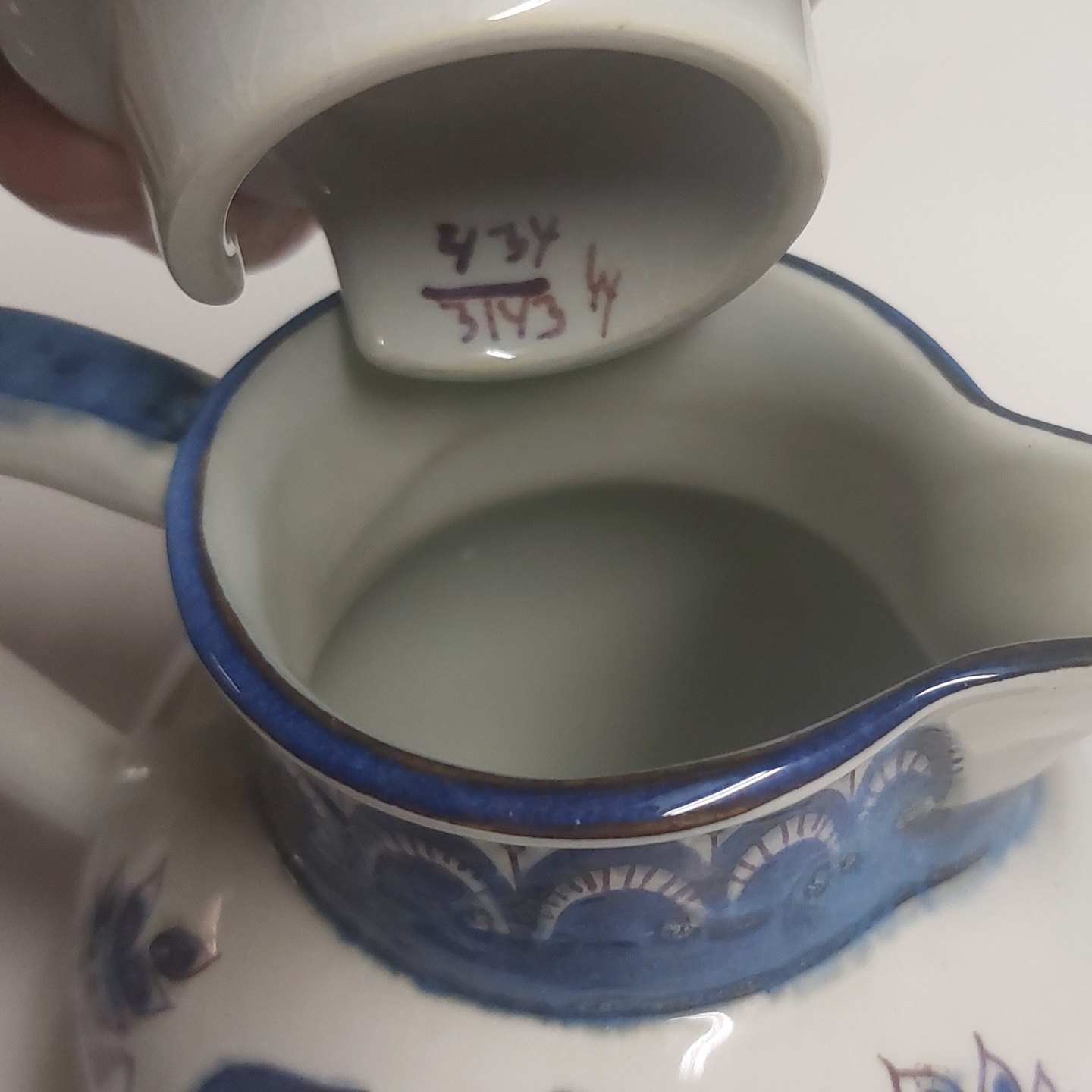 Berte Jessen: Aluminia. tenera kande i fajance. Modelnummer 434/3143. Kande med låg, dekoreret med blå blomster og bladværk. Fremstår I god stand uden skader eller reparationer. 1. sortering. Fabriksmærket på bunden. H. 13,5 cm.