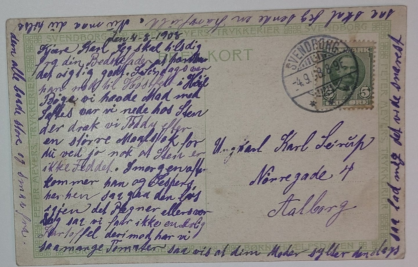 Postkort: Børnehjælpsdag Svendborg..Annulleret SVENDBORG i 1908. I god stand