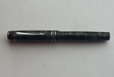 Kort grøn marmoreret Big Ben fyldepen med piston filler. Påfyldningsmekanismen skal laves før end fyldepennen igen holder blæk og kan bruges. Ingen skader eller reparationer. Alle dele originale Big Ben inclusiv 14 karat guld spids. L. 11,5 cm