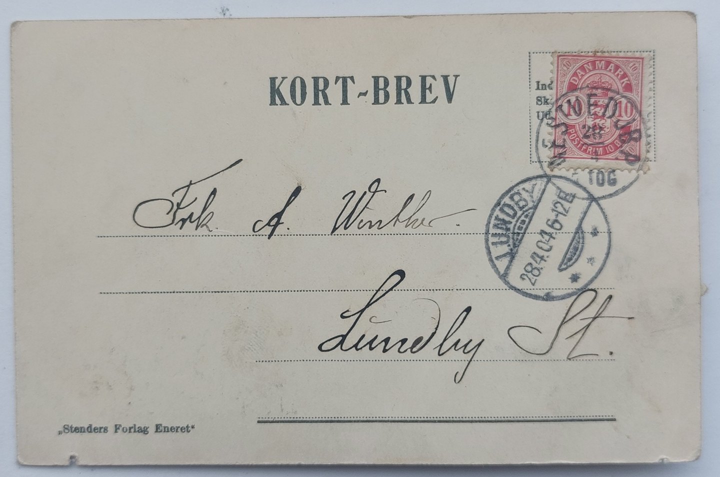 Postkort: Bud i uniform på cykel med telegram. Annulleret NÆSTVED i 1904. Mindre "hul" i nederste venstre hjørne. Lidt overflade brugsspor.Usædvanligt postkort. Stenders Forlag
