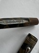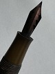 Kantet “Cleaveland” brun marmoreret fyldepen Fra 1930’erne. “Push button” blækpåfylder. I god stand med lidt aldersrelateret brugsspor på overfladen (patina). For enden en 14 karat 585 guld spids. L. 11,5 cm