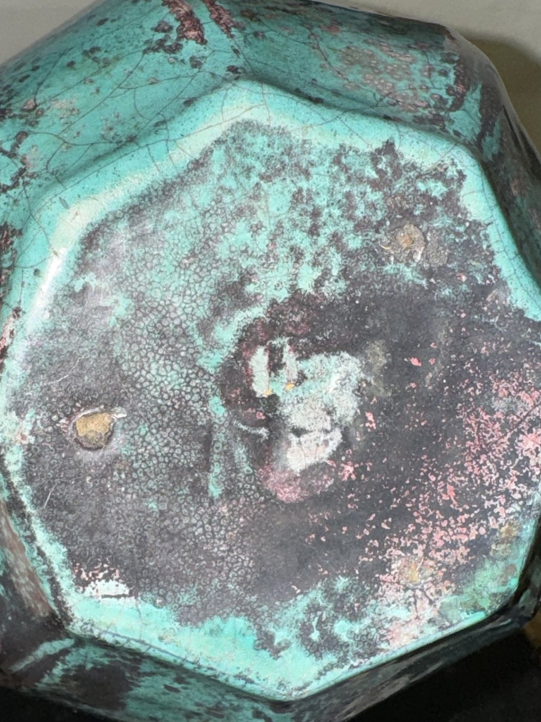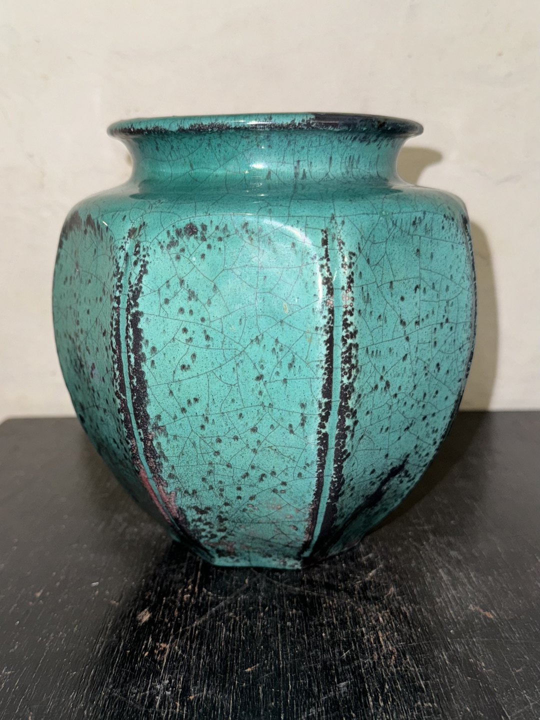 Spættet grøn og sort dekoreret vase i keramik af Svend Hammershøi for Kähler i 1920’erne. Fremstår i god stand. Utydeligt mærker på bunden med HAK. H. 17,5 cm