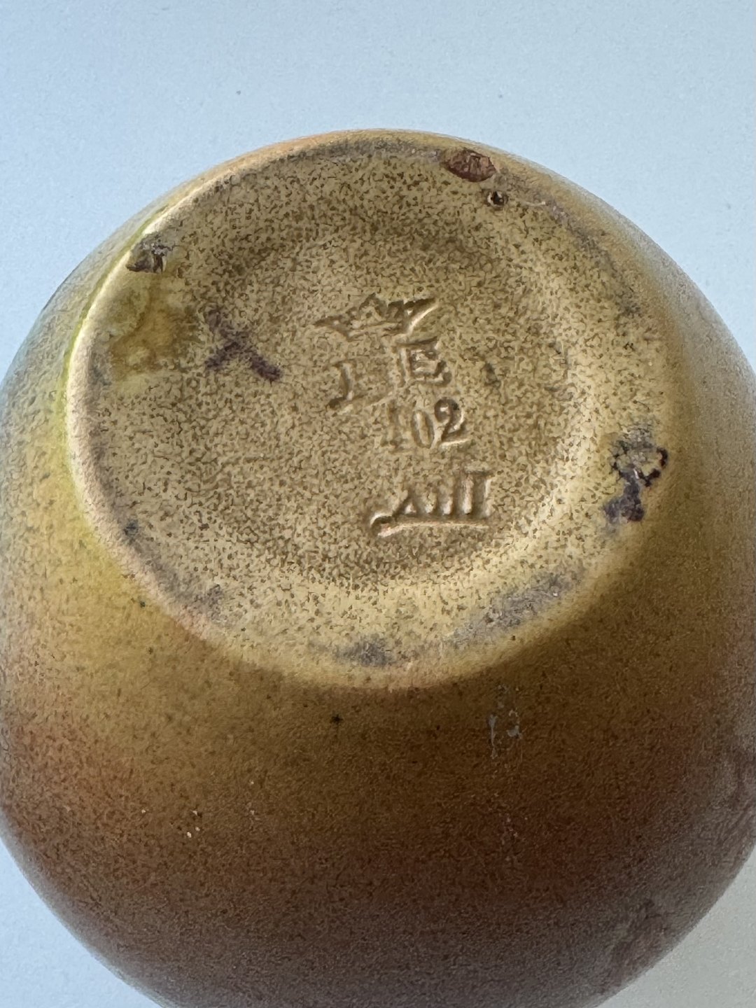 ART NOUVEAU PERIOD: Ceramic vase from P. Ipsens Enke. In good condition without damage or repairs. Factory mark on the bottom with the well-known logo “Krone over PIE” and model number 402. Height: 12.5 cm