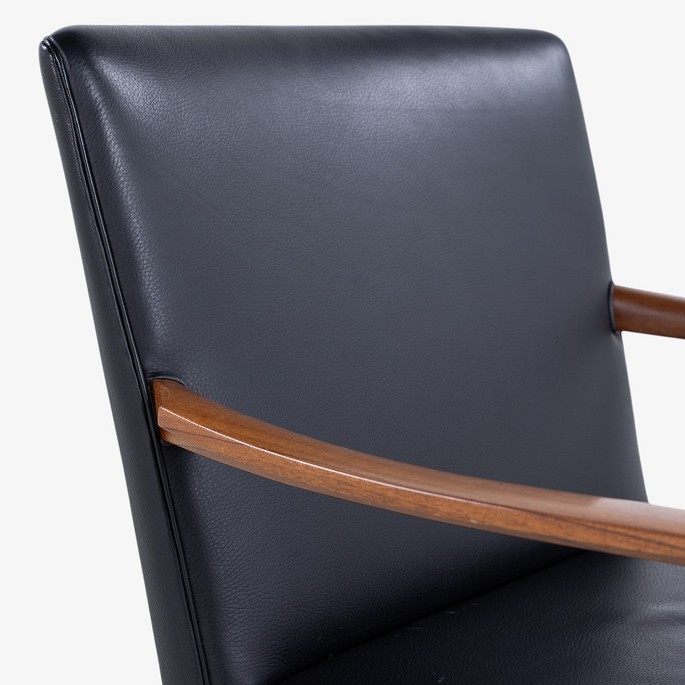 Armchair in mahogany and black leather.