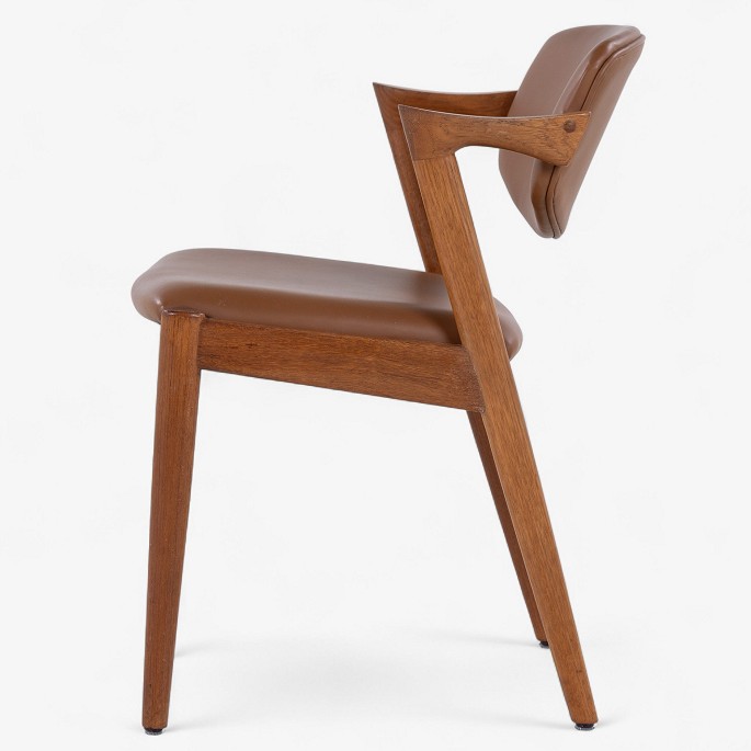 NO 42 - Set of 6 'Z-chairs' armchairs in teak with seat and back upholstered in newer Savanne semi-aniline leather (color: Walnut). Designed in the 1950s.