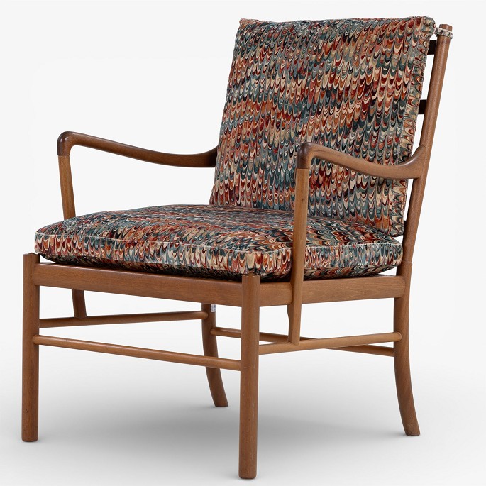 PJ 149 - 'Colonial Chair' armchair in patinated mahogany with newly upholstered cushions in 'End Paper Velvet' fabric. Manufacturer's mark.