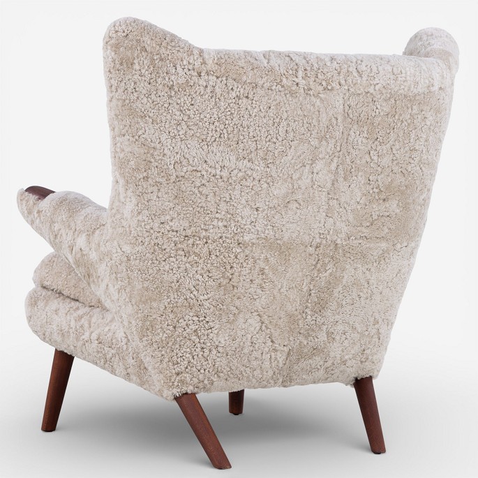 AP 19 - Nybetrukket Bamsestol i lammeskind (farve: Moonlight) m. skammel.