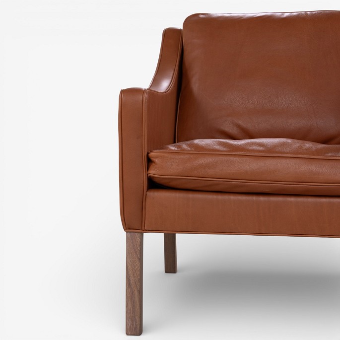 BM 2207 - Newly upholstered armchair in cognac-colored aniline leather with white oiled legs.