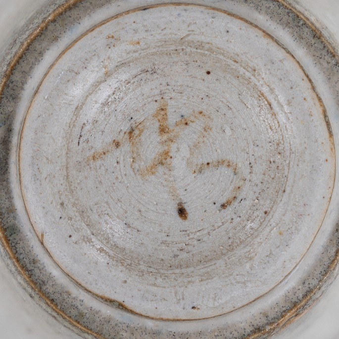 Stoneware vase decorated with white glaze and floral motif. Signed.