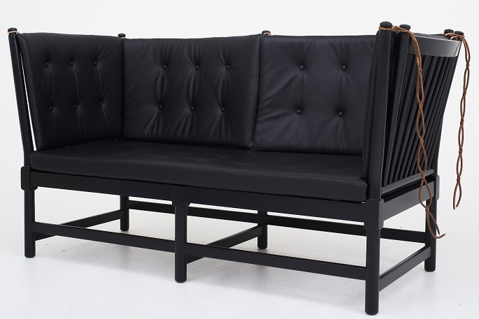 BM 1789 - Tremmesofa i sort læder og sortlakeret bøg
