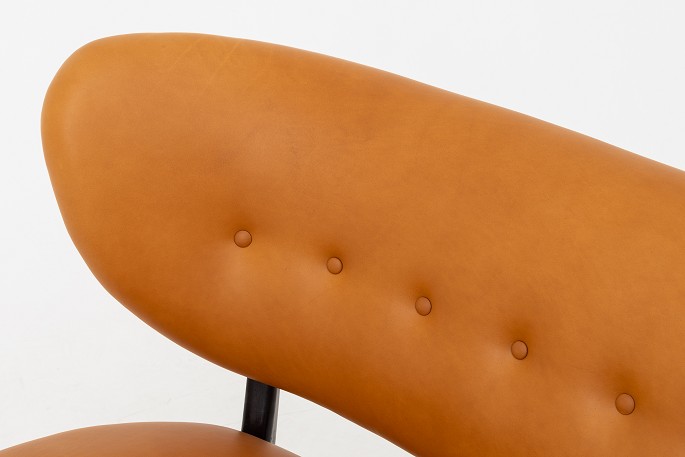 Nybetrukket sofa i Shade Cognac-læder med ben i bejdset bøg