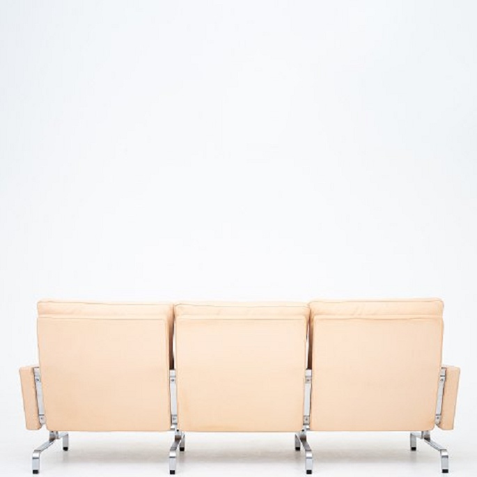 PK 31/3 - Nybetrukket 3 pers. sofa i naturlæder på stel af børstet stål.