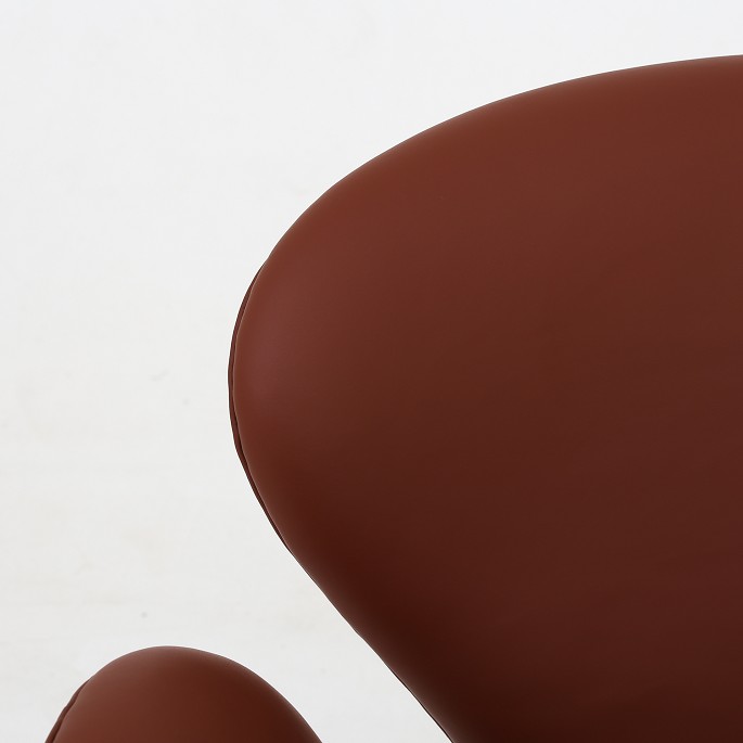 AJ 3220 - Nybetrukket 'Svanen'-lænestol i Savanne-læder (farve: Tan, 30331) med fod af aluminium.