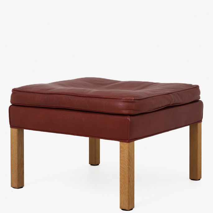 BM 2202 - Skammel i patineret, rødt læder med ben i eg.