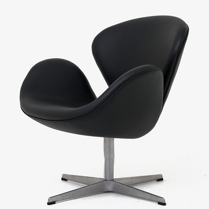 AJ 3320 - Reupholstered 'Swan' easy chair in black Savanne leather (semi-aniline) on aluminium base. KLASSIK offers the 'Swan Chair' in leather of your choice. Please contact us for more information.
