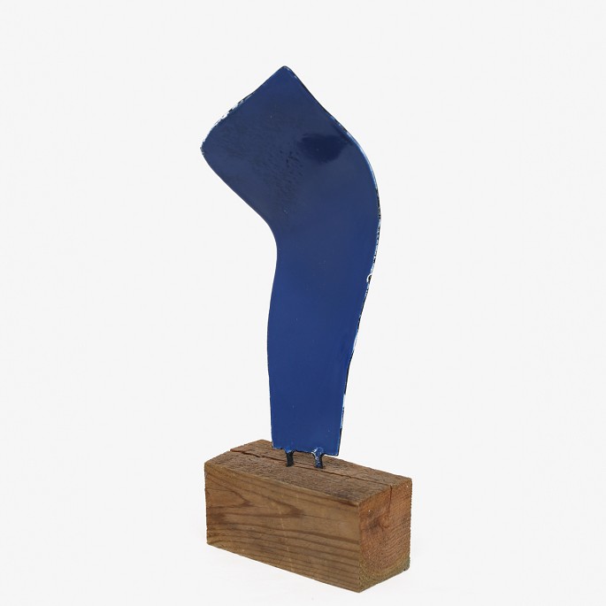 Unik blå emaljeskulptur på fod af patineret fyrretræ. Signeret. H. 42 cm