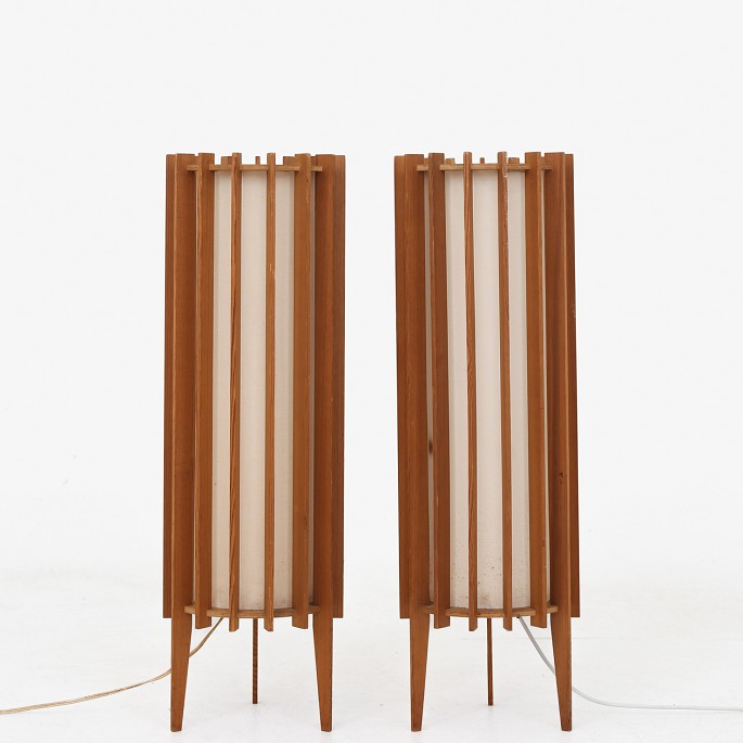 Model 'Tema' - Gulvlampe med lameller af fyrretræ og original inderskærm.