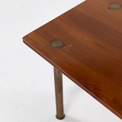 Bådformet sofabord med plade i massiv mahogni og runde messingben.