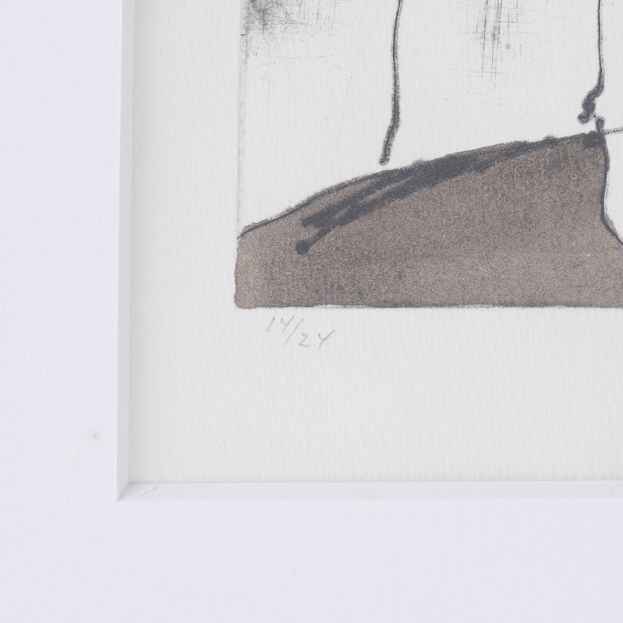Håndkoloreret radering med passepartout i sølvramme. Signeret. 14/24.