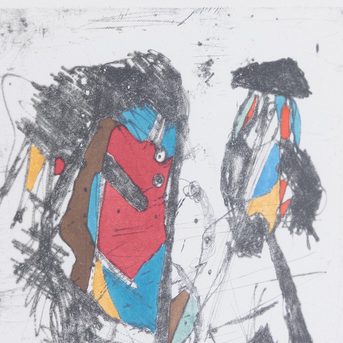 Signed etching in gold frame and passepartout with incorporated smaller frame. 47/50.