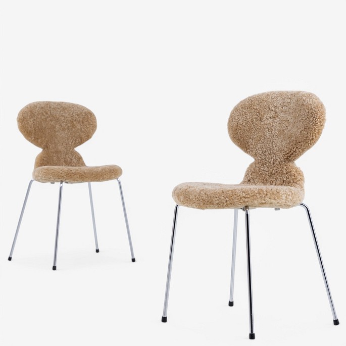 AJ 3100 - Fuldpolstret 'Myren'-stol i lammeskind (farve: Honey). Stemplet fra producent.