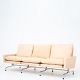 PK 31/3 - Nybetrukket 3 pers. sofa i naturlæder på stel af børstet stål.