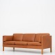 BM 2443 - 3 pers. sofa, nybetrukket i Klassik Cognac-læder (anilin-læder) på ben af eg.