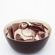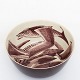 Stor skål i fajance dekoreret med okseboldsglasur. Signeret og er fra 1960.