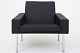 AP 34/1 - AP 34/1 - Lufthavnsstolen med ben i stål. Nybetrukket med sort Savanne-læder. Vi tilbyder polstring af Lufthavnsstolen med stof eller læder efter eget valg. Kontakt os venligst for mere information.