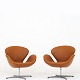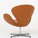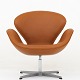 AJ 3220 - Nybetrukket 'Svanen' i Klassik Cognac anilin-læder på gl. fod af aluminium med returdrej.