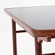 Sofabord i massiv cubamahogni og sko i messing med top i sort glas.
